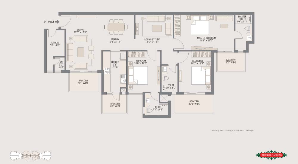 These luxurious apartments are designed to suit your taste, 3BHK apartments are available here. The apartments are spacious, well-ventilated and come with almost all the modern specifications you can think of. The total project stands on 12 acres of land. Currently, it is in a ready to move in state.