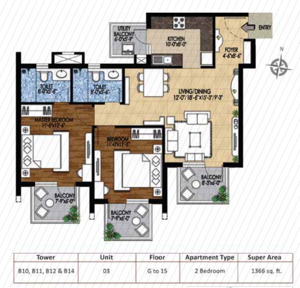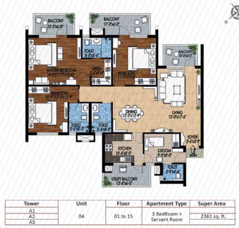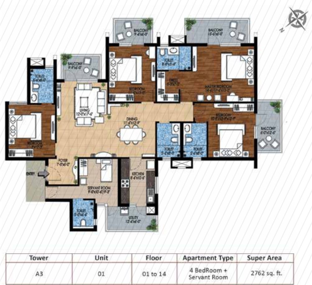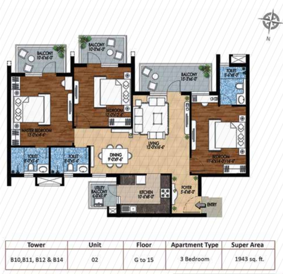 The apartment in M3M Woodshire feature bedroom with plastic emulsion paint, laminated wooden flooring, hardwood door with polished flush shutter and powder coated anodized glazing, living/dining room with plastic emulsion paint, vitrified tiles, hardwood door with polished flush shutter and powder coated anodized glazing, kitchen with 2’ high ceramic tiles above counter, vitrified tiles, hardwood door with polished flush shutter and powder coated anodized glazing and toilets with combination of ceramic tile dado, mirror and oil bound distemper, anti- skid ceramic tiles, hardwood door with polished flush shutter and powder coated anodized glazing.